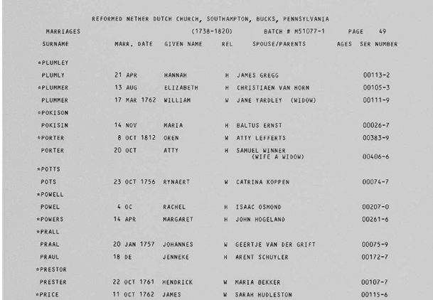 Rynaert Potts in the Pennsylvania, Compiled Marriage Records, 1700-1821