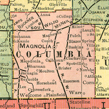 Location of Magnolia, Columbia County, Arkansas